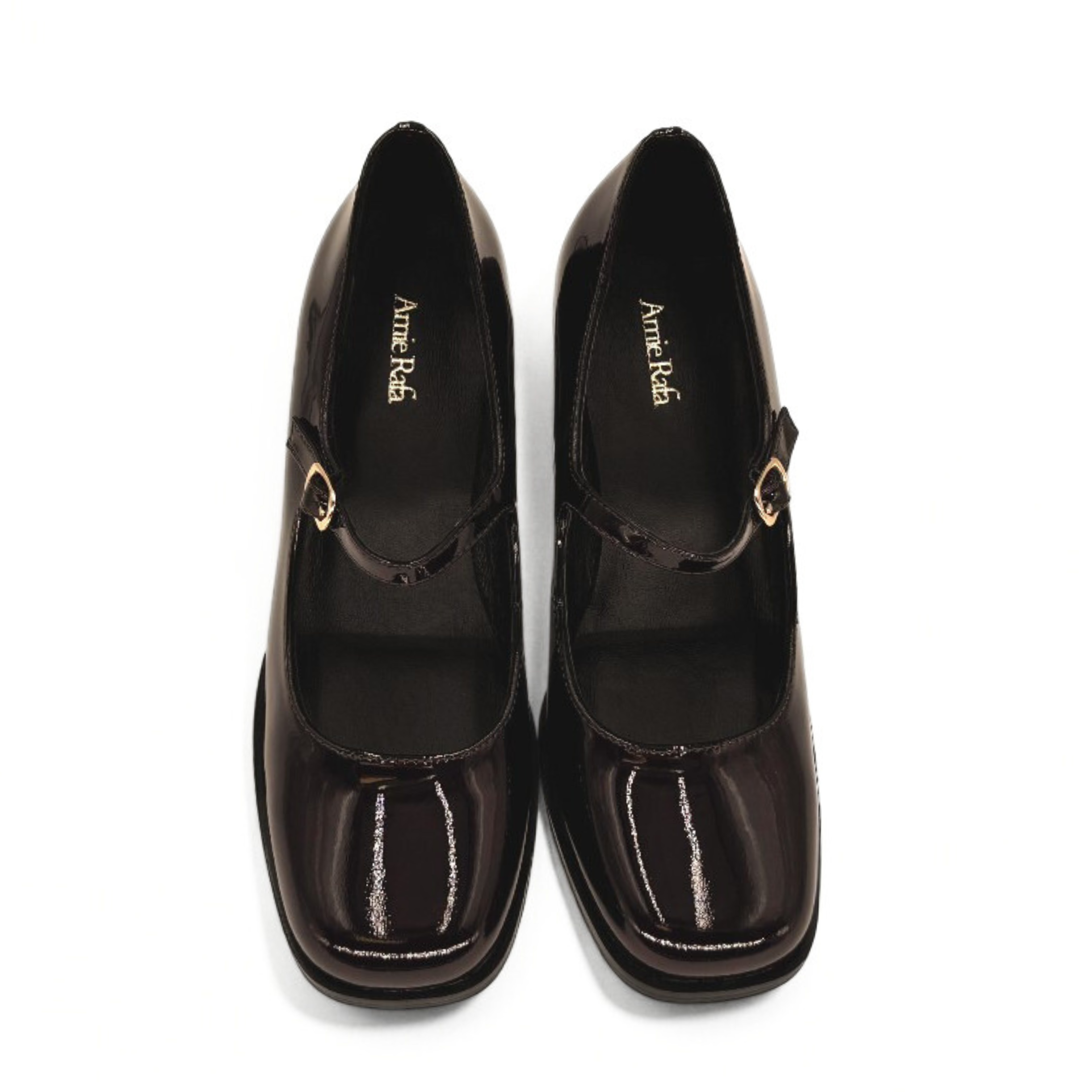 An iconic block heel that we've designated as a signature is used here, and it's perfectly walkable heel adding height to an otherwise demure shoe to a classic Mary Jane.